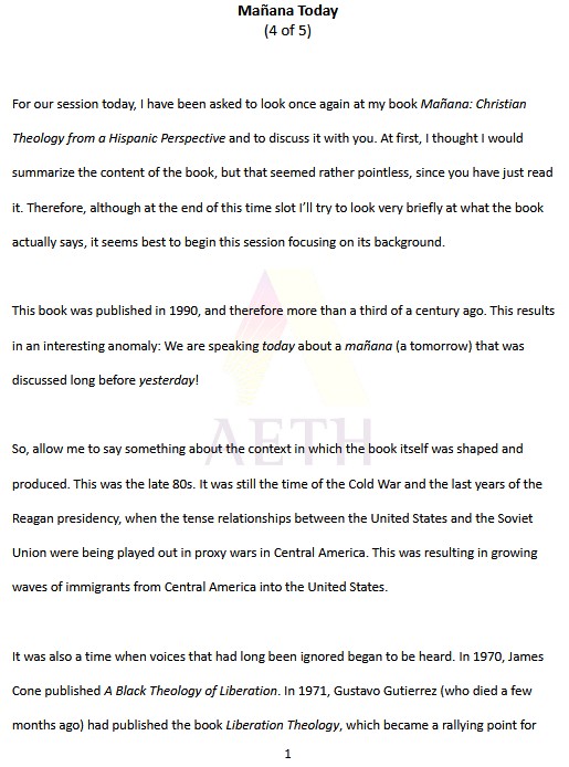 A review and summary of the context in which the book Mañana: Christian Theology from a Hispanic Perspective was written, and a brief overview of its content.