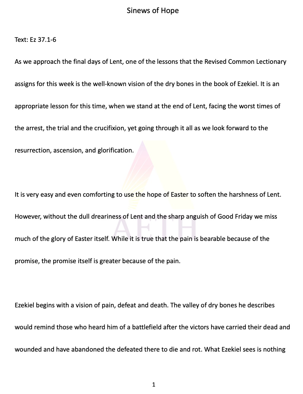 A Lenten sermon on how the hope in the Valley of Dry Bones in Ezekiel 37 can point us to unity that overcomes present crises