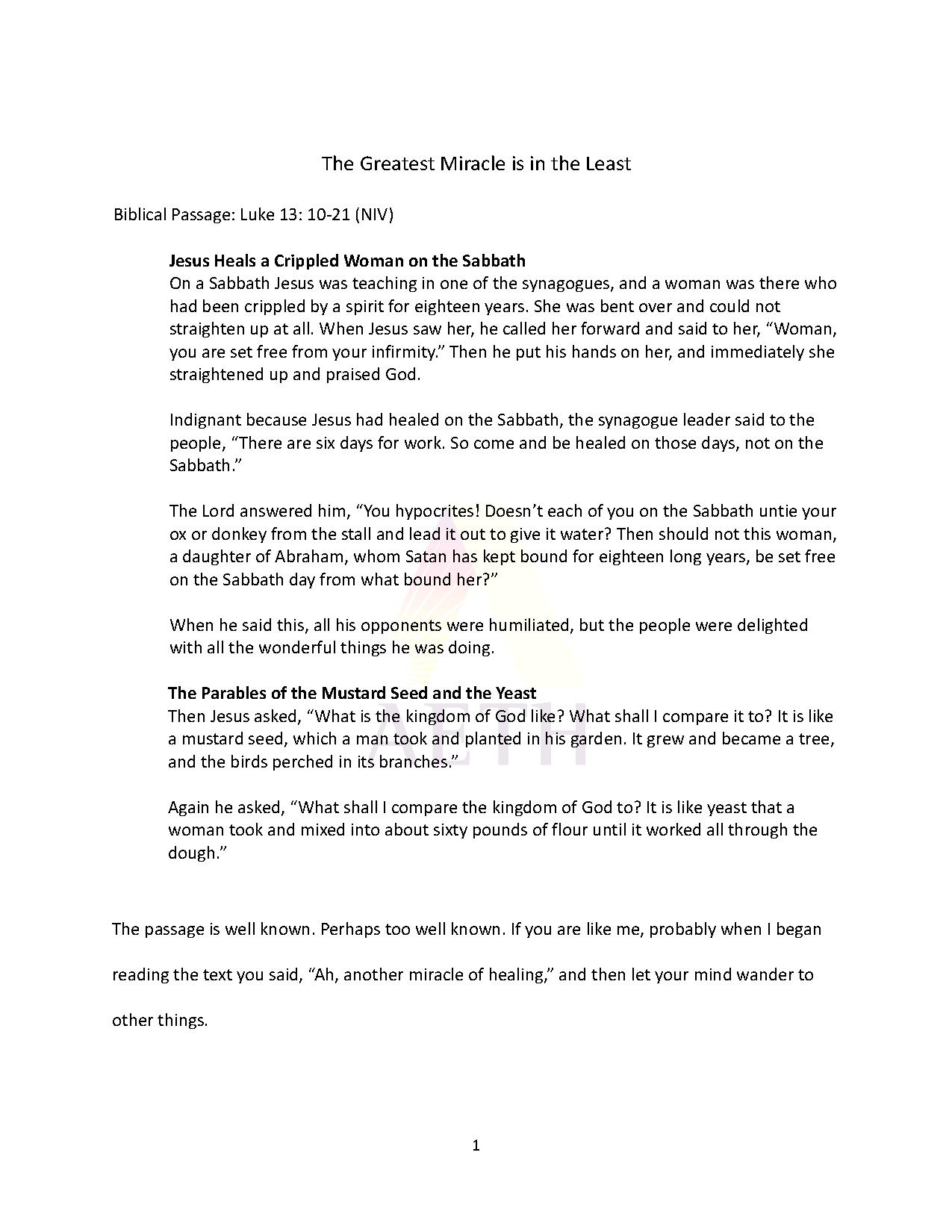 A sermon highlighting God's grace in small acts, seen in the healing and parables of Luke 13: 10-21.