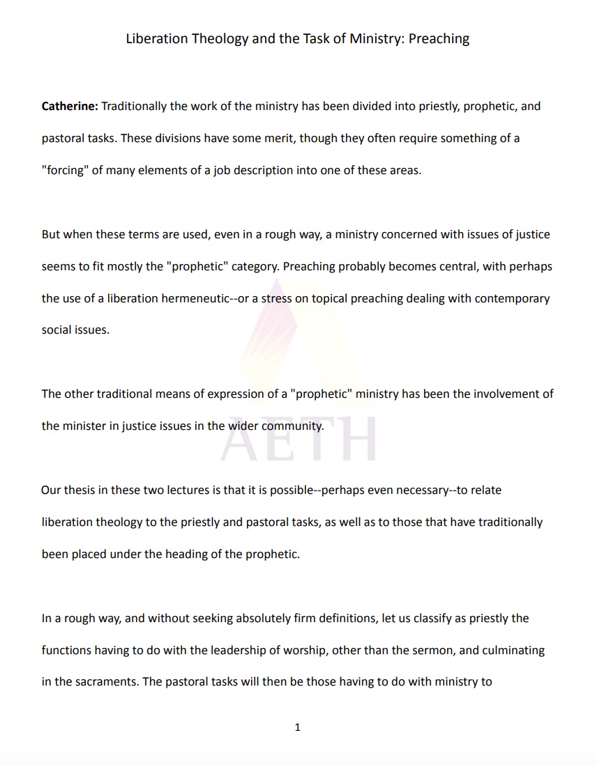 relationship between liberation theology and various acts of ministry, particularly preaching
