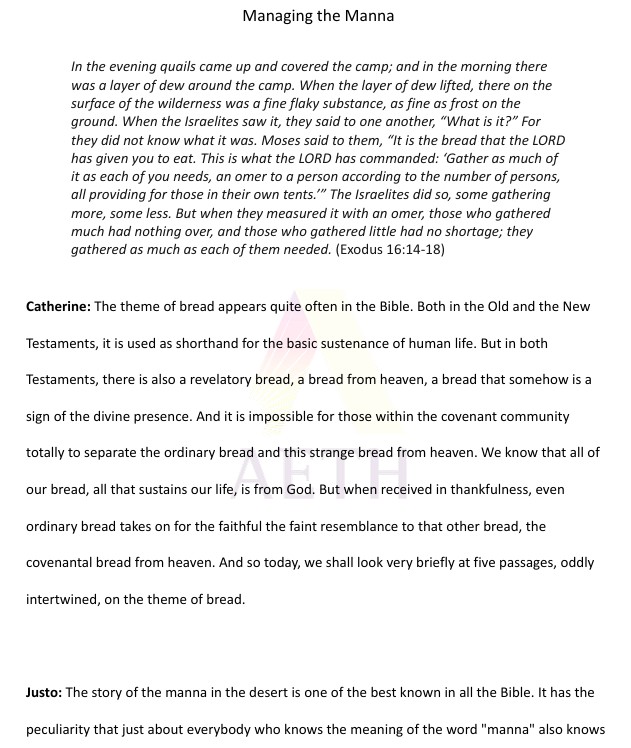 A reflection on God’s provision and justice, exploring manna, daily bread, and fair distribution. Calls believers to live with gratitude, share justly, and embody the miracle of community.