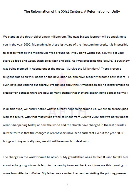 Global changes calling for diverse, Spirit-guided unity in the chuech for the 21st century