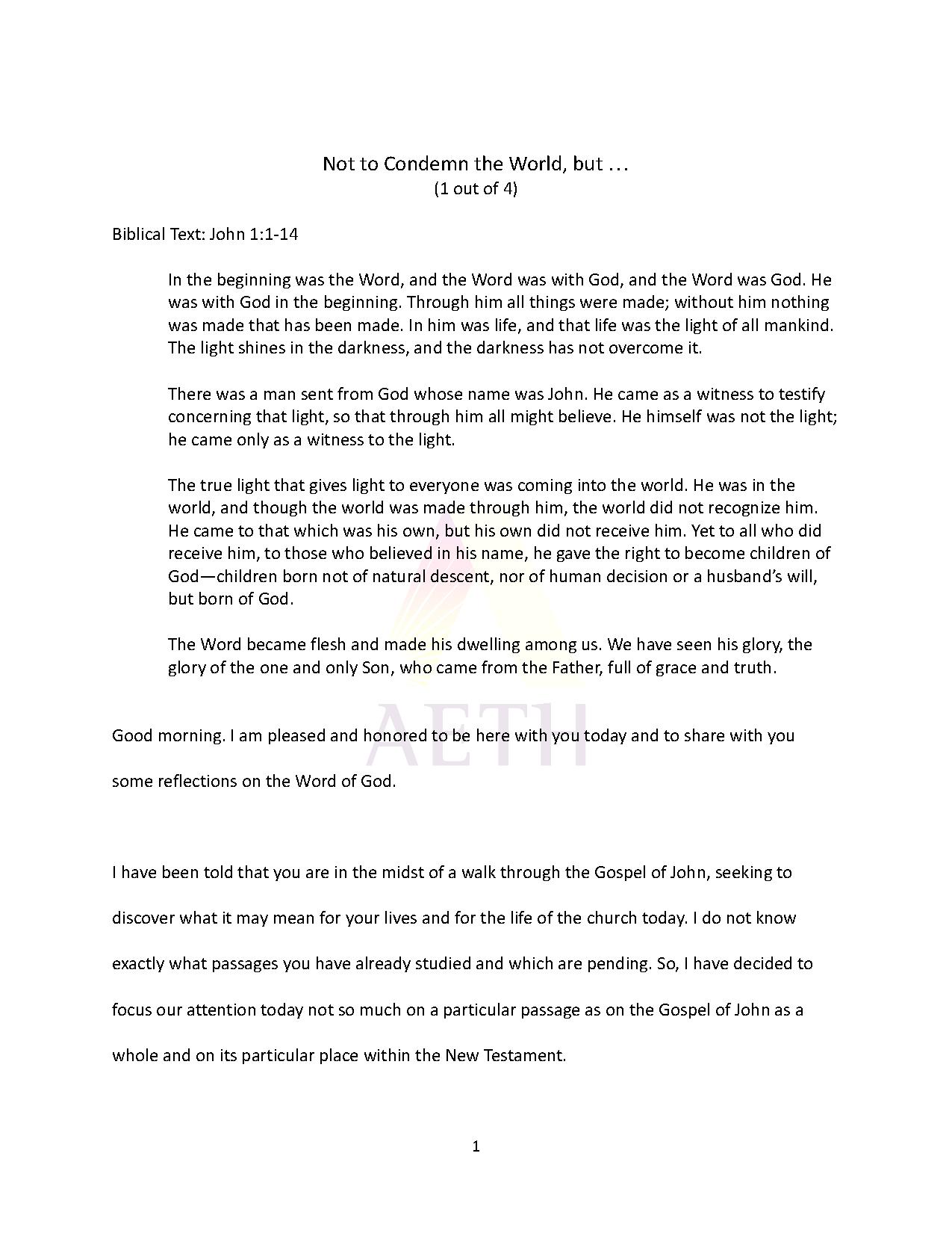 Reflections on the Gospel of John, emphasizing Jesus' call not to condemn but to save the world.