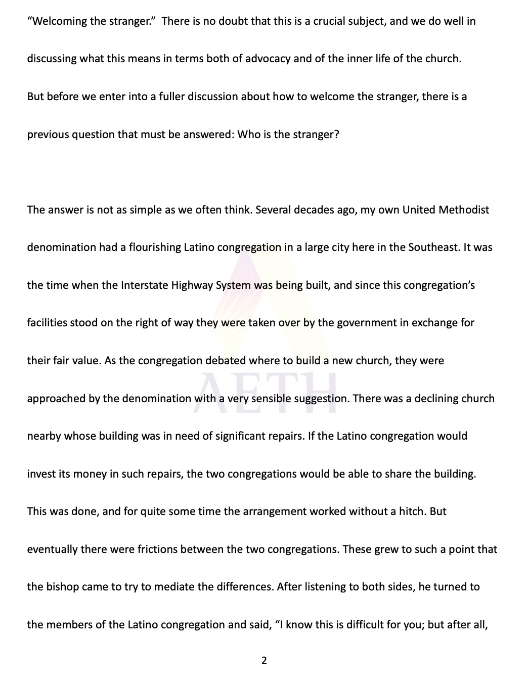 Embracing the theme of "welcoming the stranger," the speaker discusses the theological significance and challenges of hospitality within the church community.