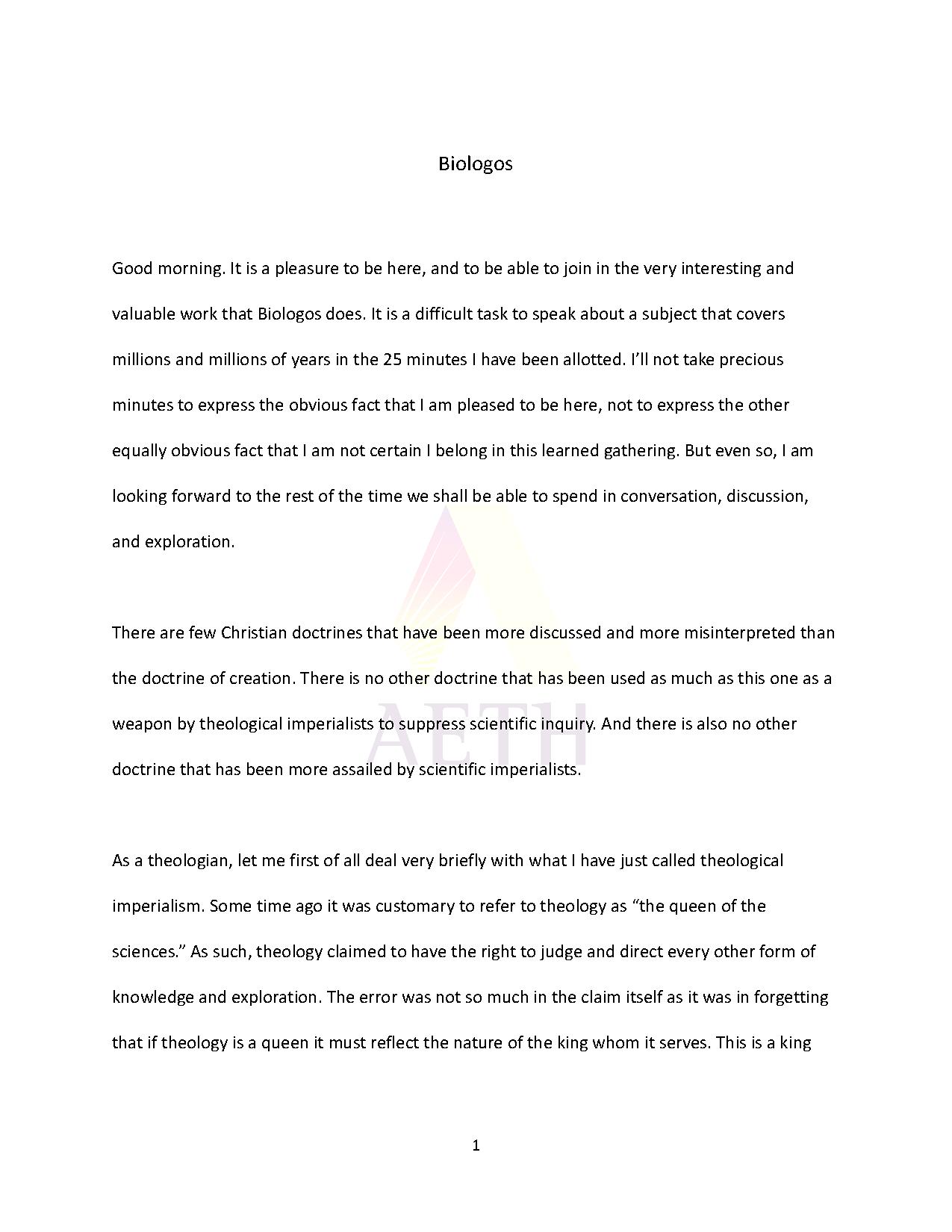 Creation affirms God’s love, the value of the cosmos, and a purposeful final cause.