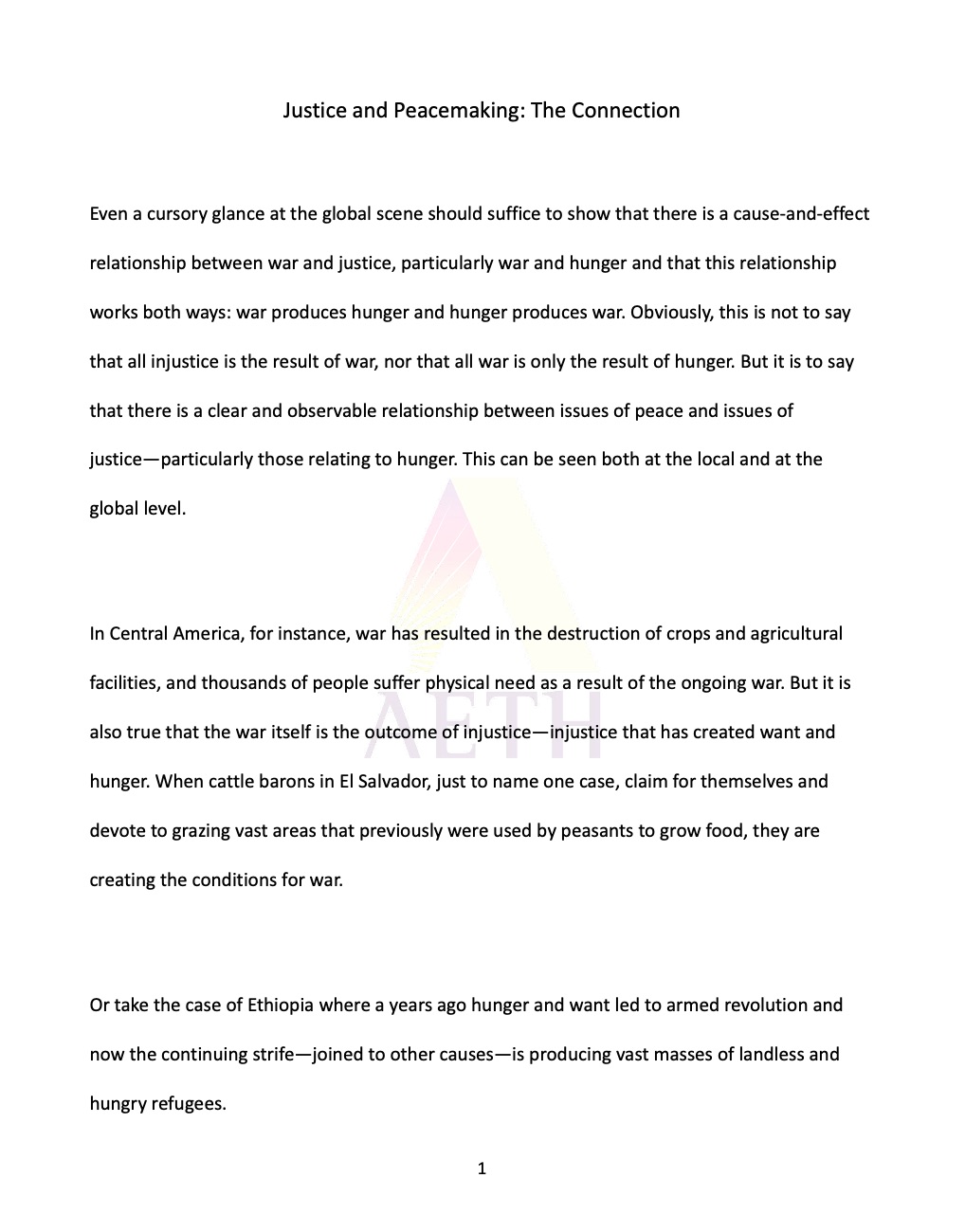 Justice and peace are inseparable. War breeds hunger, and injustice blocks true peace. Christ calls us to seek not a shallow peace but a reconciliation rooted in justice, love, and shared responsibility.