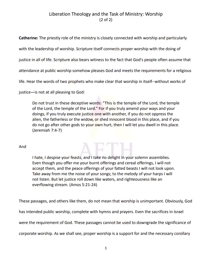 Relationship between liberation theology and various acts of ministry, particularly in leading worship