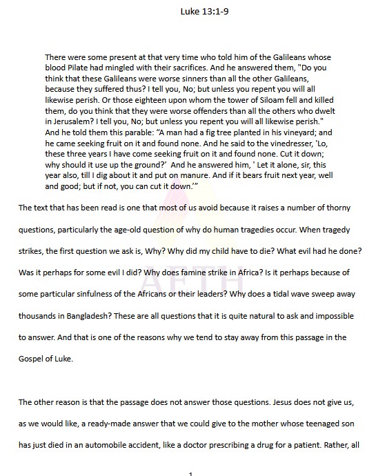 Luke 13 is about understanding human suffering, repentance, God's grace, and bearing fruit with the blessings we receive