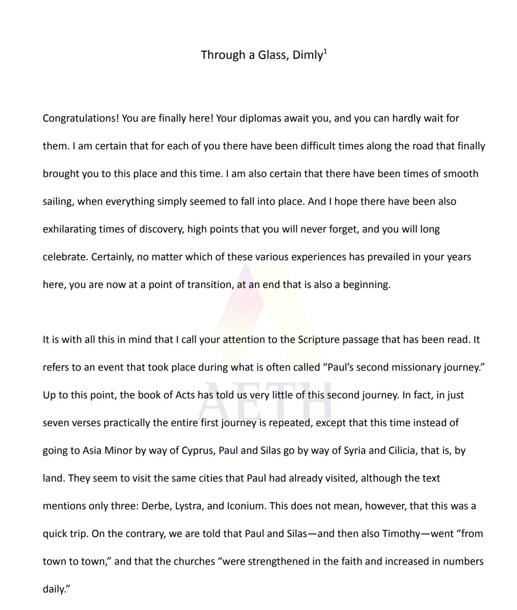 A graduation speech about faith, unexpected paths, and trusting God's plan beyond personal visions